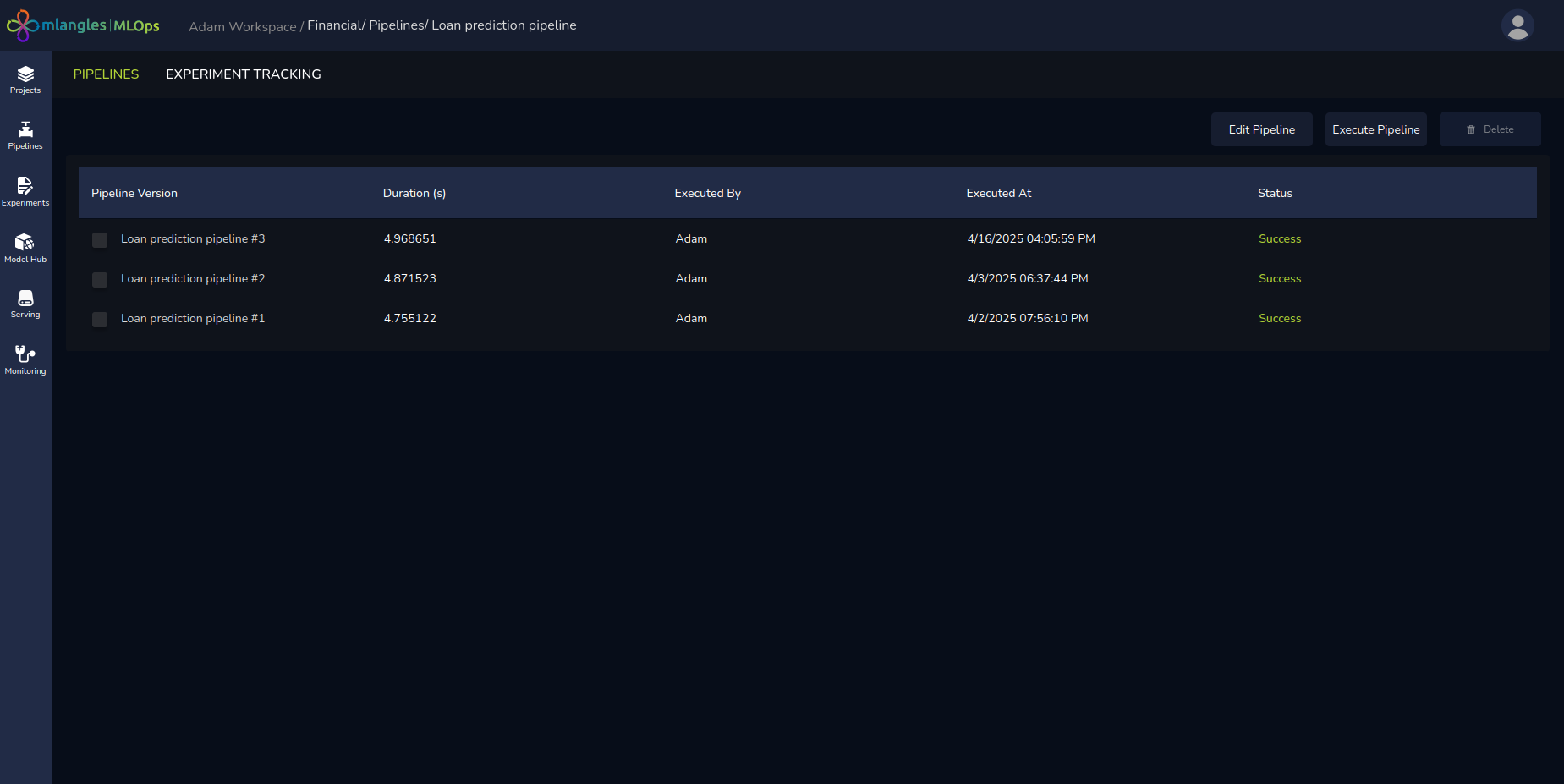 - In the home screen the user can click on Execute Pipeline button to start execution.